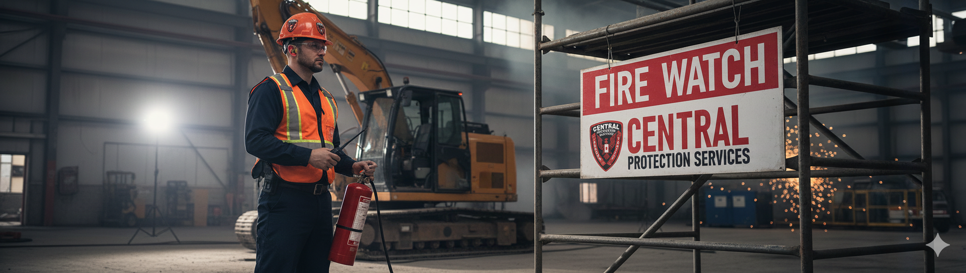 At Central Protection Services, we provide specialized Fire Watch Security Guard Services in Edmonton, Calgary, and across Alberta, Saskatchewan, British Columbia, Manitoba, Ontario, and Quebec. Our licensed and trained security guards help protect your property, staff, and assets by ensuring fire safety compliance and rapid response to potential fire hazards.