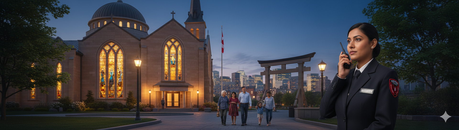 At Central Protection Services, we provide professional Religious Security Services across Alberta, Saskatchewan, British Columbia, Manitoba, Ontario, and Quebec.. Our licensed and trained security professionals protect places of worship, faith communities, and affiliated facilities, ensuring a safe environment for worship, education, and outreach.